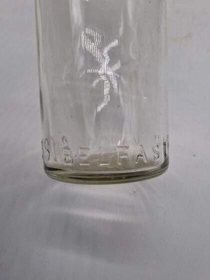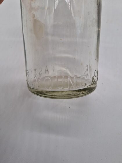A large, clear glass bottle for Young & Sons (Belfast) Ltd.