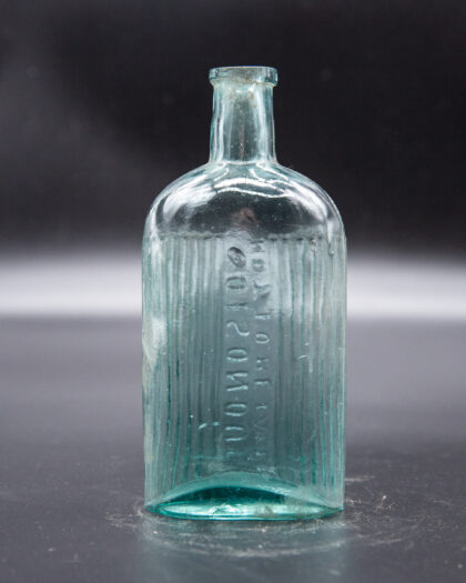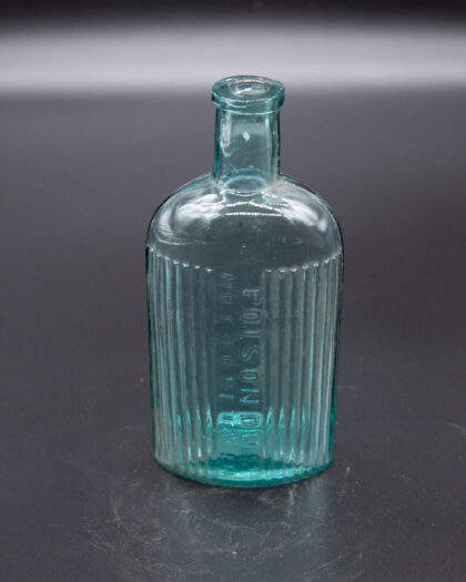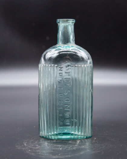 Ribbed clear glass bottle that reads, "Poisonous Not to be Taken".