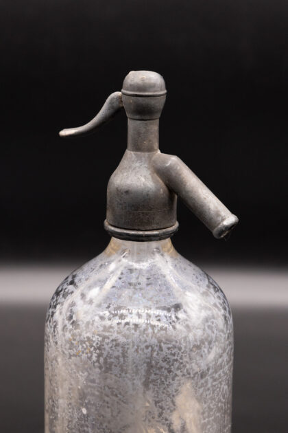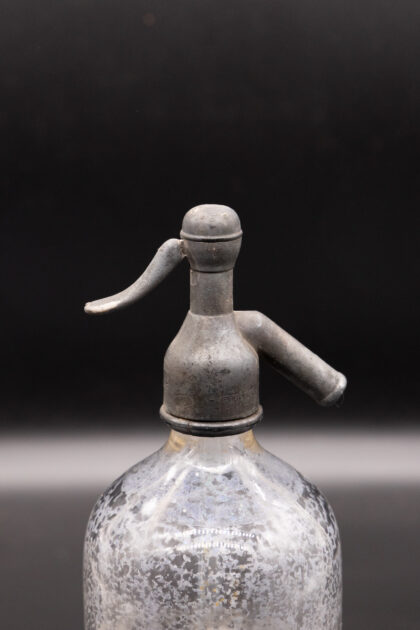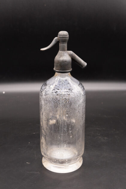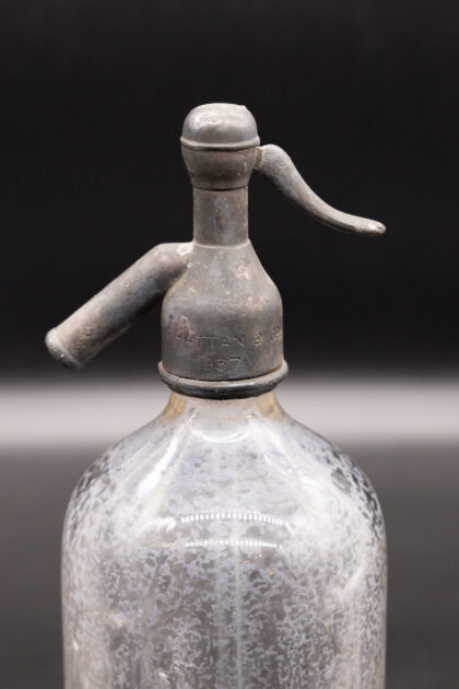 A clear glass soda syphon for Grattan & Co. Ltd. Belfast.