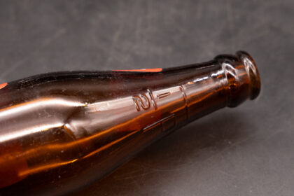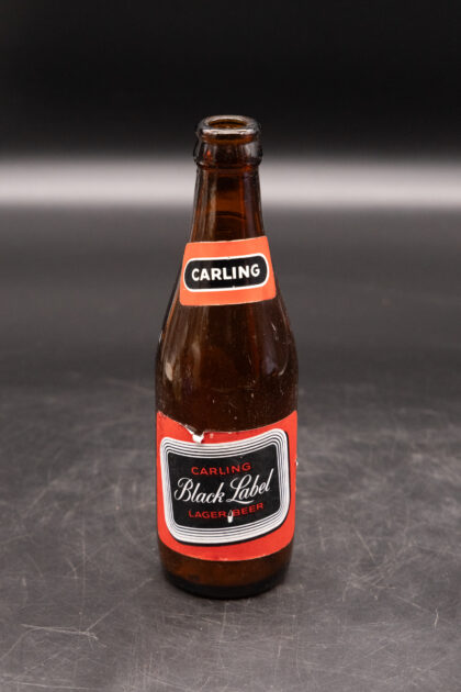 A brown glass bottle for Carling Black Label Lager Beer with applied labels.