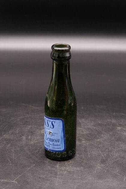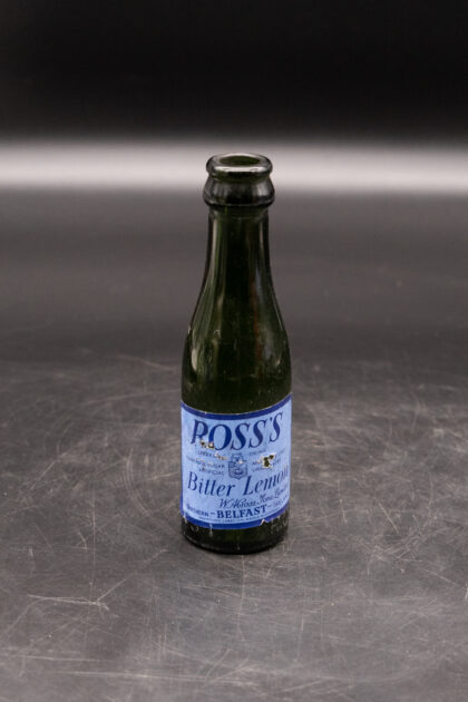 A green glass bottle for Ross's Belfast with applied Bitter Lemon label.
