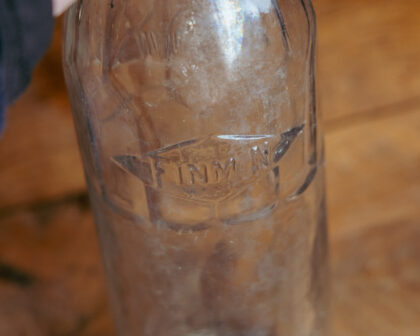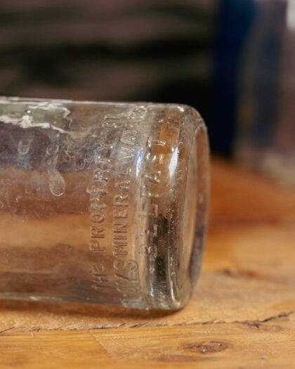 A clear glass bottle for Finmin Finlay's Mineral Waters Ltd. Belfast.