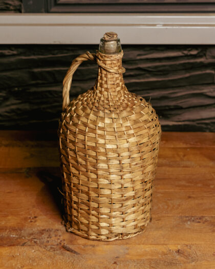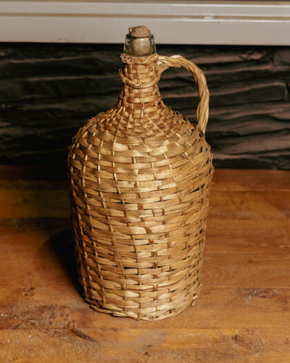 Large wicker-cased glass bottle.