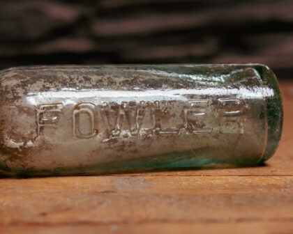 A clear glass bottle for Fowler Belfast.