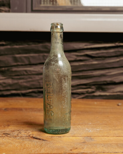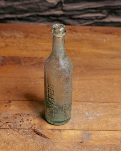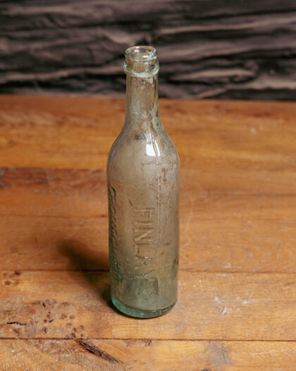 A clear glass bottle for Finlay's Mineral Water Company Cromac Wells Belfast.