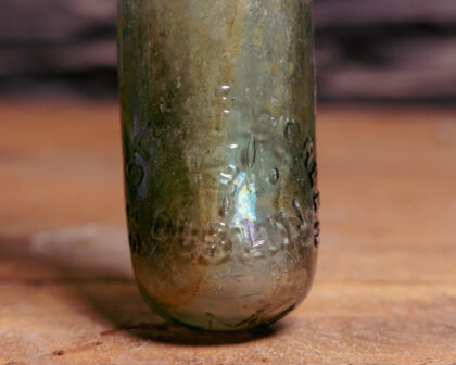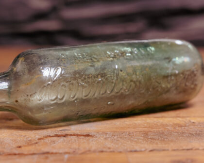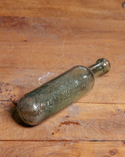 A glass bottle with a rounded base for Hovenden & Orr St Stephen's Green Dublin.