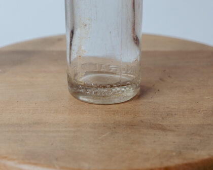 A clear glass bottle for Divis Mineral Water Co. Belfast.