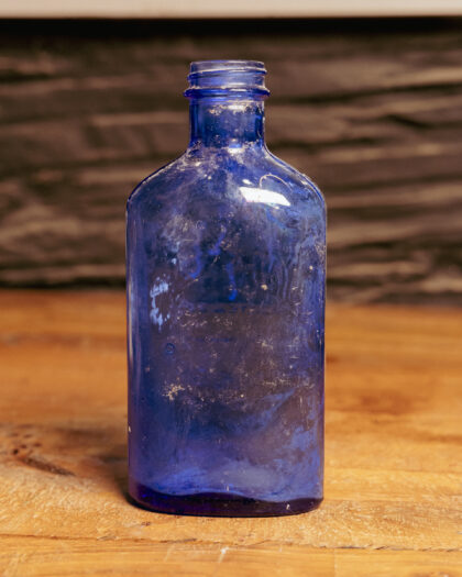 A blue glass milk of magnesia bottle.