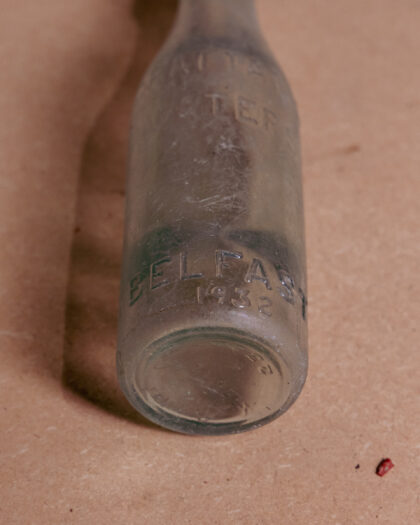 A clear glass bottle for Grattan's Waters Belfast dated 1932.