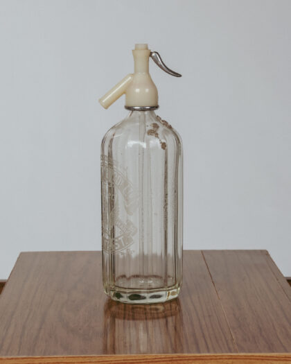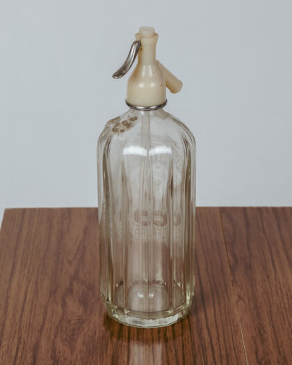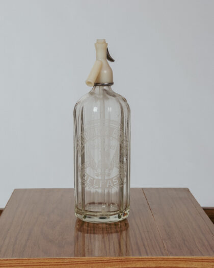 A glass soda syphon for Wm. Corry & Coy. Ltd. Belfast with plastic top.