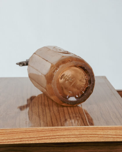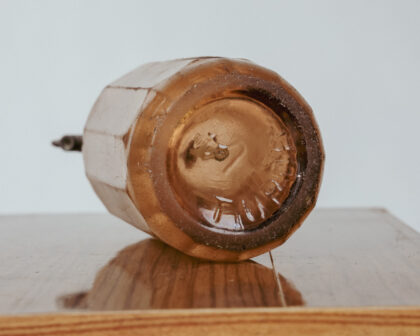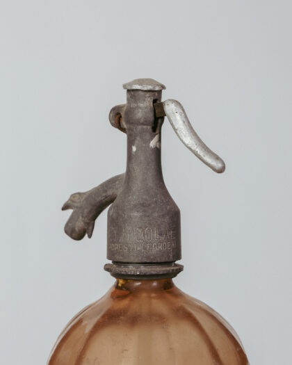 A rare pink glass soda syphon for Oituz Bucuresti with metal top.