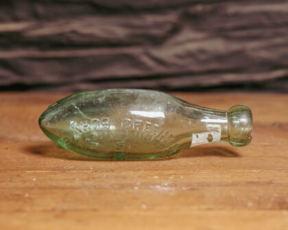 A hand blown clear glass bottle for Greene King & Sons Limited Bury St Edmunds.