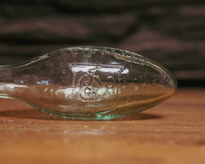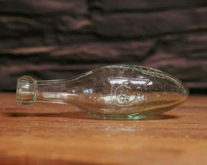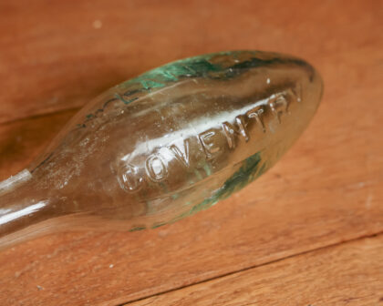 A hand blown clear glass bottle for W. Lant & Co. Coventry.