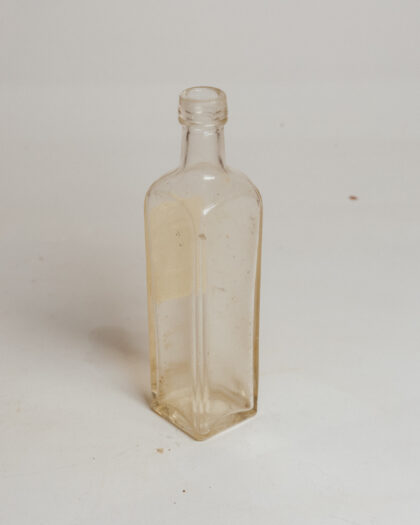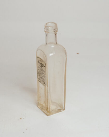 A clear glass bottle with a label for Eucalyptus Oil from a Dublin chemists.