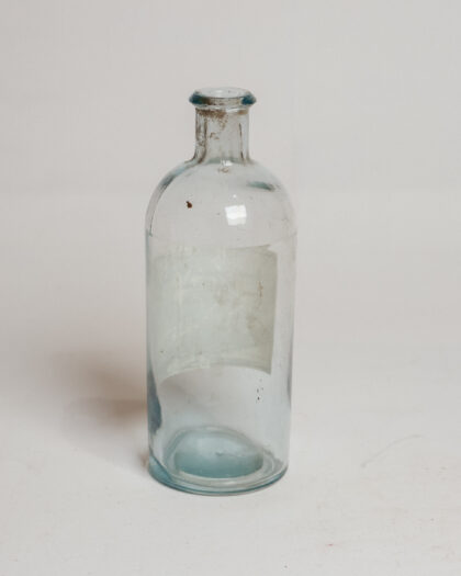 A clear glass bottle with a label for Dublin chemists.