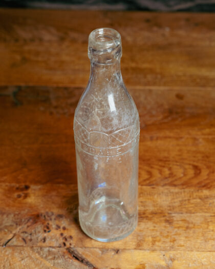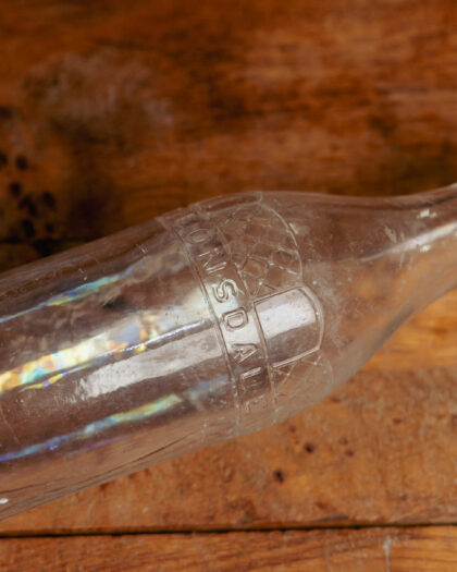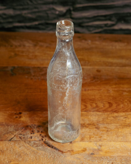A clear glass bottle for Lonsdale Mineral Water Co. Belfast.