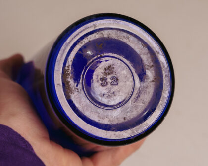 A cobalt blue glass jar.