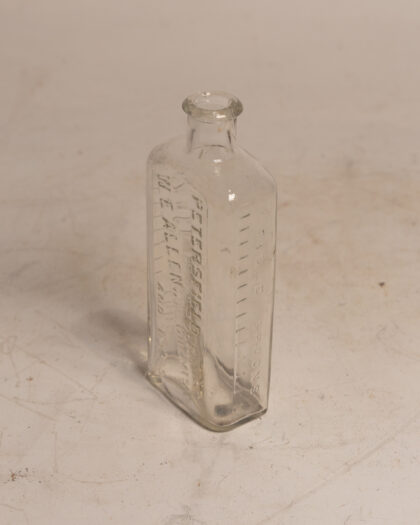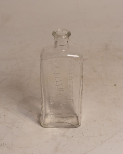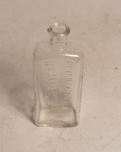 A clear glass bottle for W. E. Allen M.P.S. Chemist Petersfield and Liss.