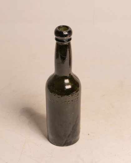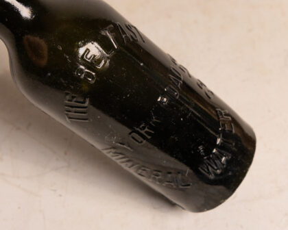 A dark green glass bottle for The Belfast Mineral Water Co. York Road.