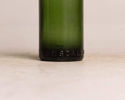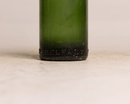 A dark green glass bottle for Lonsdale Mineral Water Co. Belfast.