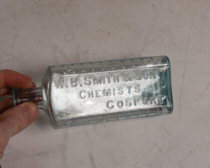 A clear glass bottle for W. B. Smith & Son Chemists Gosport.