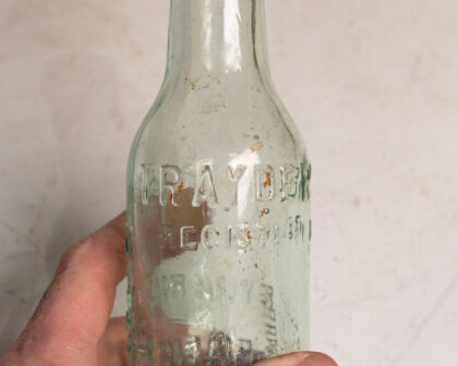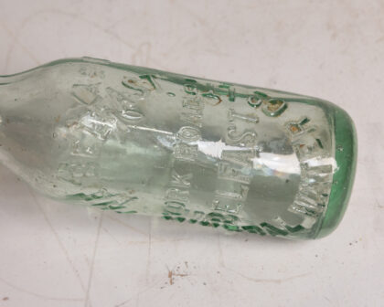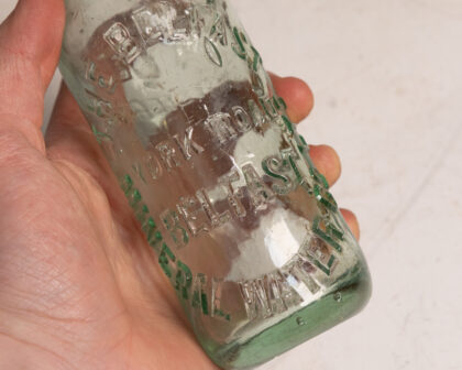 A clear glass bottle for The Belfast Mineral Water Co. York Road.