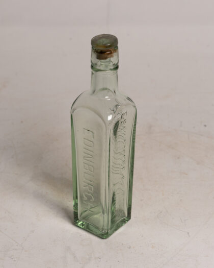 A clear glass bottle with glass stopper for Symington & Cos Ess Coffee & Chicory Edinburgh.