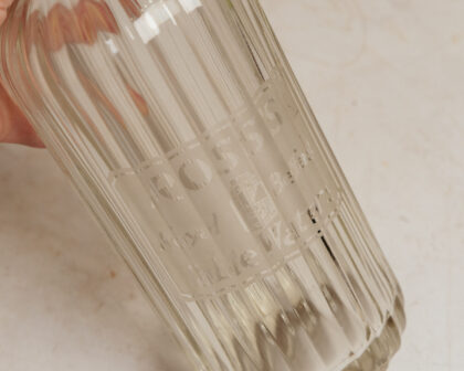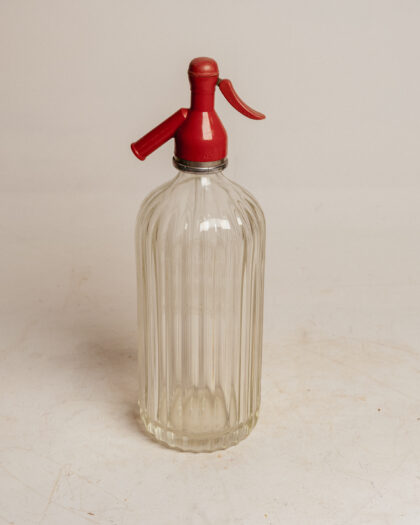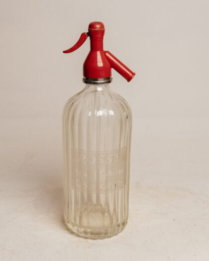 A glass soda syphon for Ross's Table Waters Belfast with plastic top.
