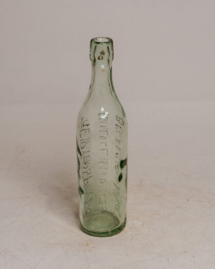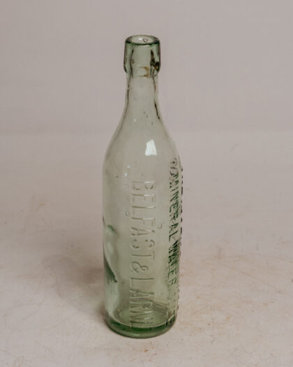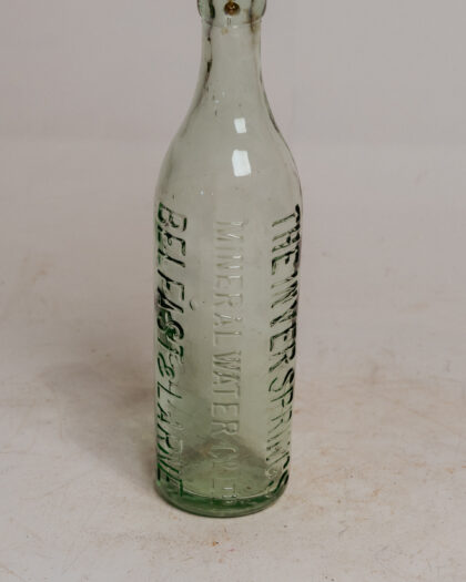 A clear glass bottle for The Inver Springs Mineral Water Co. Ltd. Belfast & Larne.