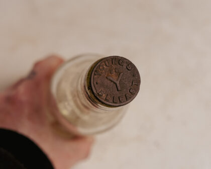 A clear glass bottle for Young & Sons Ltd. Belfast complete with matching stopper.