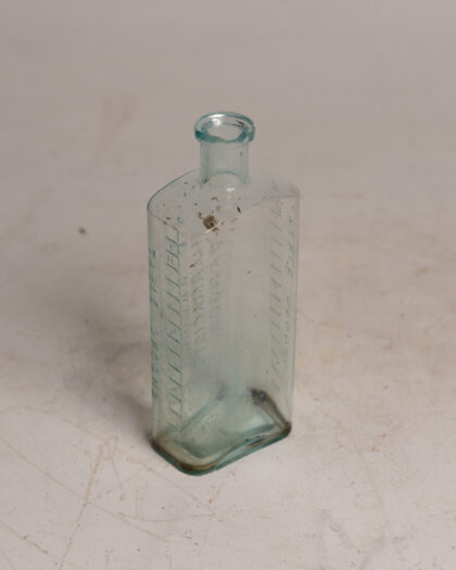 A clear glass chemists bottle for J. S. Balmer Ltd. Pharmacists Bangor.
