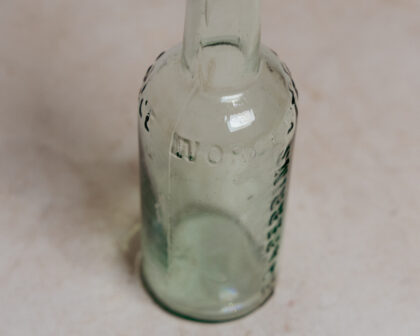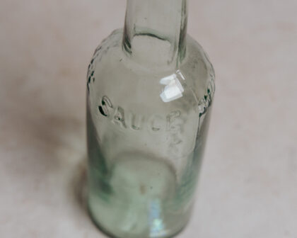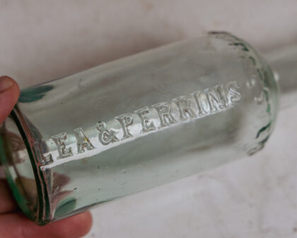 A vintage clear glass bottle for Lea & Perrins Worcestershire Sauce.