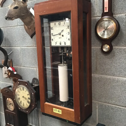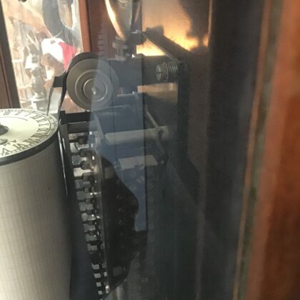 Clock for recording temperature in up to twenty separate rooms.