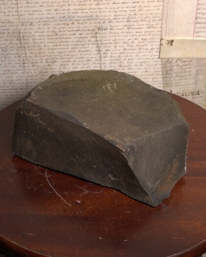 Genuine Giant's Causeway stone. A unique geological specimen from the famous Northern Irish landmark. This basalt rock piece exhibits the characteristic dark grey colour and angular fracture patterns of the Causeway stones. A tangible piece of natural history, this stone would make an interesting decorative item for any home or office or a unique gift for someone with an interest in geology or Irish heritage. It is in good condition and has a unique look.