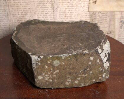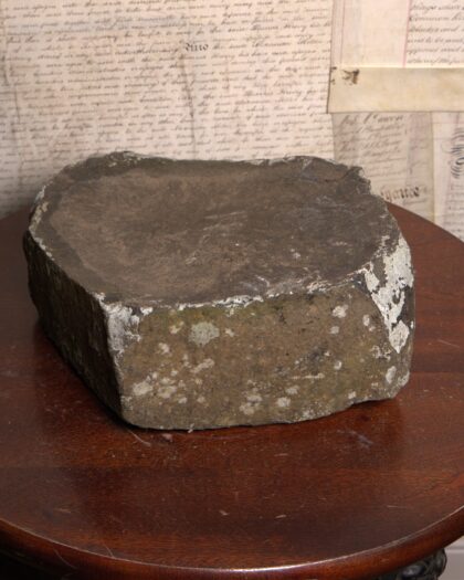 Genuine Giant's Causeway stone. A unique geological specimen from the famous Northern Irish landmark. This basalt rock piece exhibits the characteristic dark grey colour and angular fracture patterns of the Causeway stones. A tangible piece of natural history, this stone would make an interesting decorative item for any home or office or a unique gift for someone with an interest in geology or Irish heritage. It is in good condition and has a unique look.