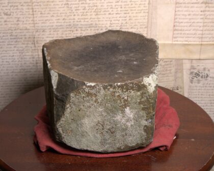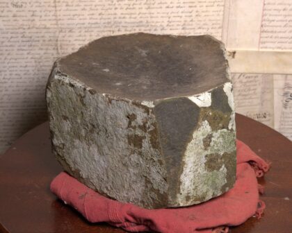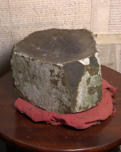 Genuine Giant's Causeway stone. A unique geological specimen from the famous Northern Irish landmark. This basalt rock piece exhibits the characteristic dark grey colour and angular fracture patterns of the Causeway stones. A tangible piece of natural history, this stone would make an interesting decorative item for any home or office or a unique gift for someone with an interest in geology or Irish heritage. It is in good condition and has a unique look.