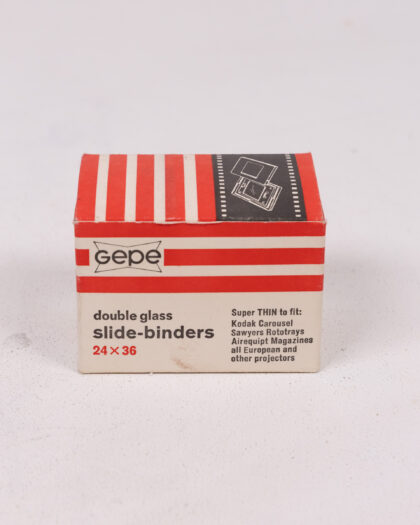 Original box of Gepe double glass slide binders for 24x36mm slides. Vintage photography accessory in excellent condition, ready to use.