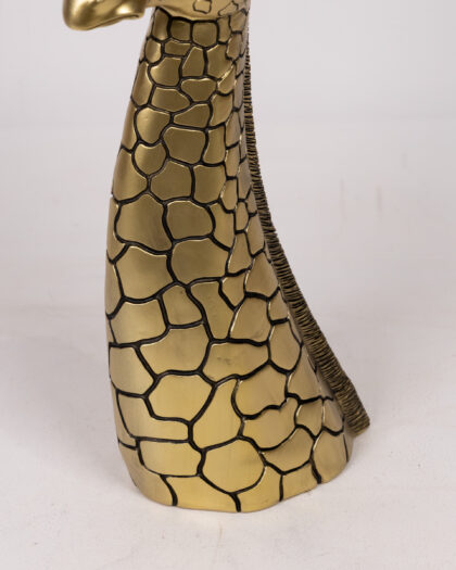 Add a touch of safari chic to your home with this striking gold giraffe head sculpture. This eye-catching ornament features a detailed giraffe head atop a long, patterned neck, all finished in a lustrous gold tone. Perfect for adding a touch of personality to shelves, desks, or mantelpieces. The giraffe is made of resin with a gold finish.