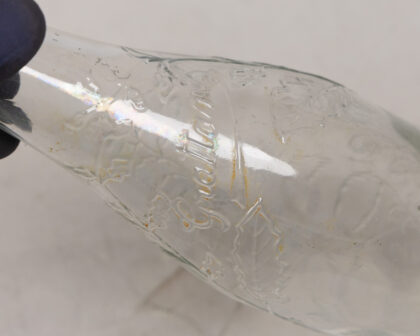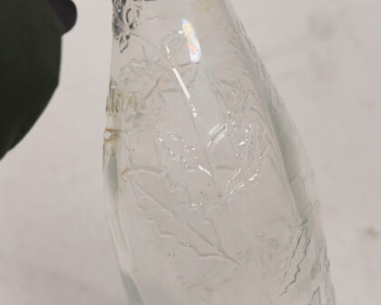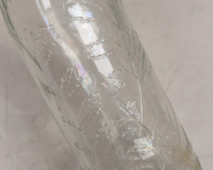 Vintage Grattan's clear glass bottle with embossed leaf design. Good condition, ideal for collectors or display. Add a touch of vintage charm to your home!