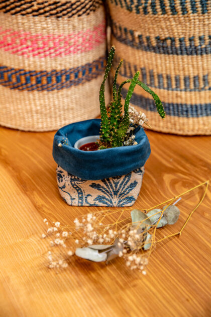 This Sea Blue x Yellow Handmade Fabric Pot made in collaboration with Kapdaa–The Offcut Company who take fabric offcuts and samples and turn them into wonderful new products! They work with huge brands in fashion and automotive industry… AND US!