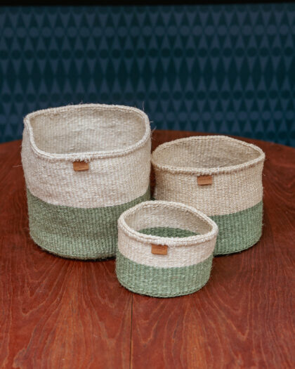 These soothing sapling green and white colour block baskets are ethically produced in three handy sizes, woven from sustainably sourced sisal grass by artisan women in rural Kenya. Use your new woven storage basket for keeping jewellery, toiletries and stationery organized, or fill yours with fruit, dried flowers, children’s toys, remote controls, rugs, gloves and hats. These round sisal baskets make excellent desk tidies, toy baskets and woven planters for your houseplants – and inspired new home gifts. Whichever way you choose to use your new colour block basket it is sure to bring a dash of texture and pastel-hued joy to your home.