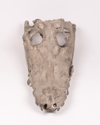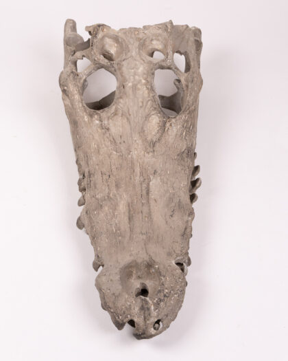 Grey Crocodile Skull Replica. This is a stone replica of a crocodile skull. Perfect for any room of the home! Condition is good.