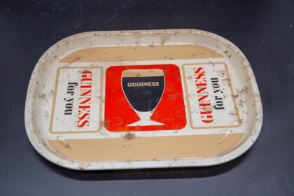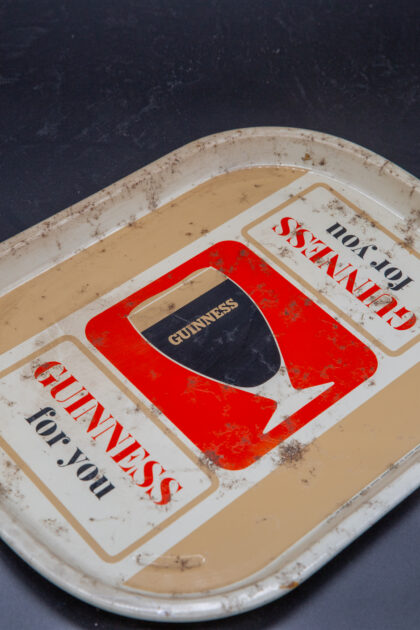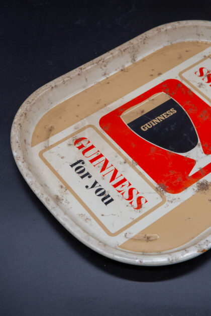 A metal bar tray with Guinness For You advertising motif.