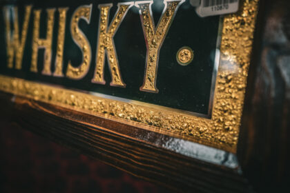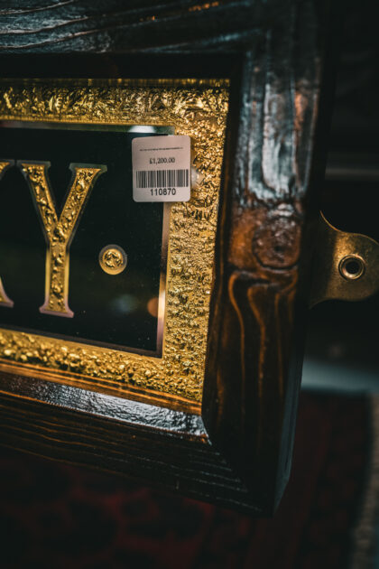Reverse painted with a green fade out , glue chipped and gilded with 22ct gold leaf writing. Handmade Frame.