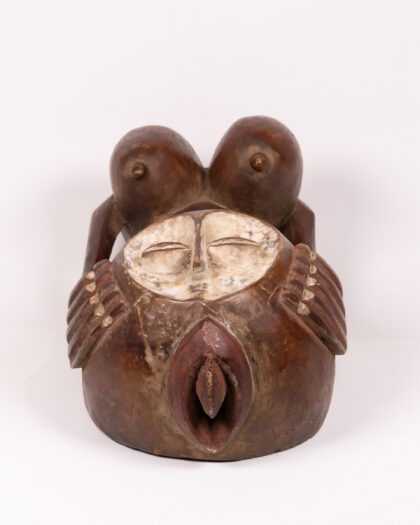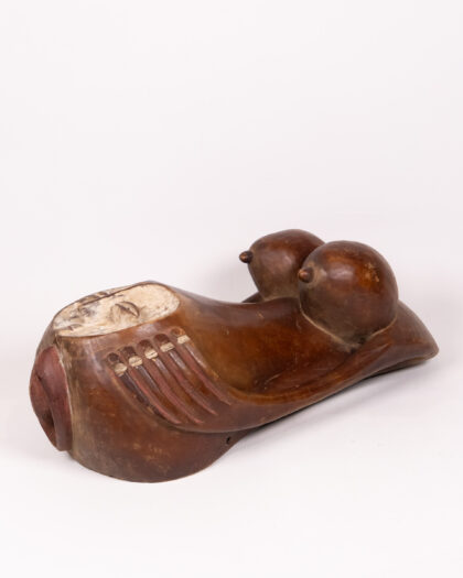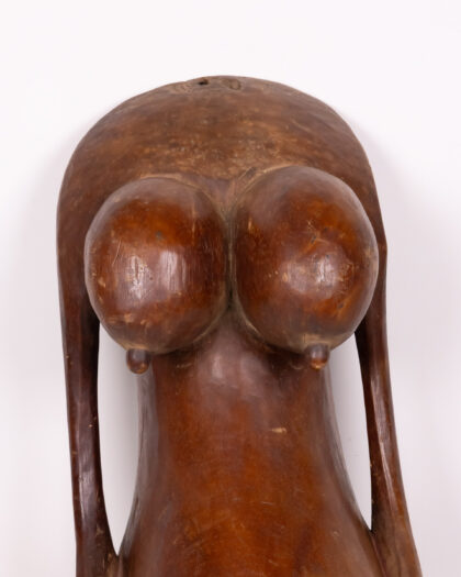 Vintage Tanzanian Makonde wood body mask, a unique hand-carved female ritual art sculpture.