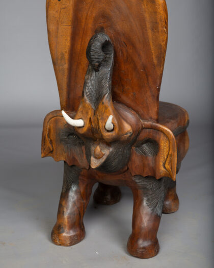 Hand carved from a single piece of solid tropical hardwood, this African elephant chair is a real talking piece for any home. Matching table available here.