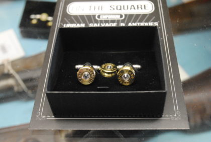 Hand crafted Bullet cuff links and tie pin made from Sako 22-250 Rem gamehead centre fire rounds