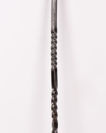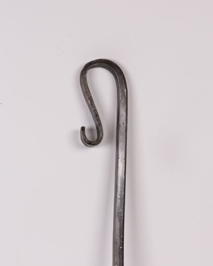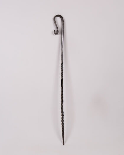 Hand forged iron fire poker. Twisted design with a hook at the end. Solid and durable, ready for use. Ideal for any hearth.