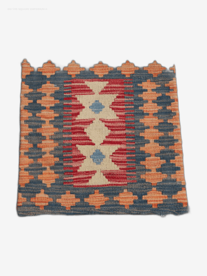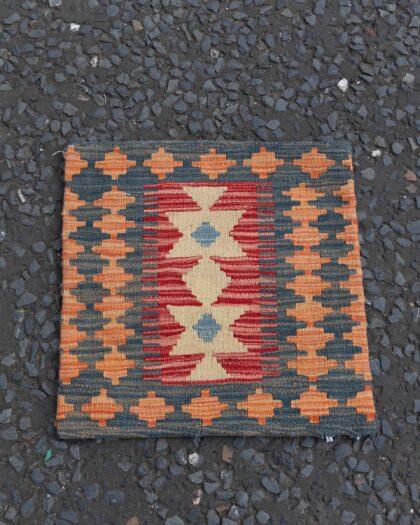 Elevate your decor with this handcrafted Afghan kilim cushion cover, showcasing warm oranges, greens, and reds in a stunning geometric layout. Made from a handwoven kilim rug, this cushion cover is both durable and stylish. It includes a convenient zip at the back, making it a functional and beautiful addition to any space.