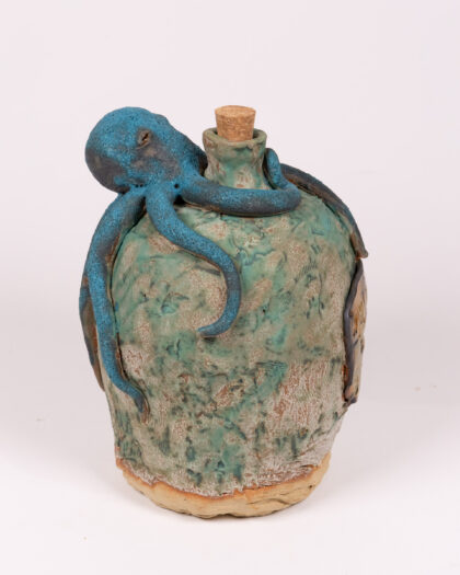 Handcrafted ceramic jug featuring a blue octopus sculpture.